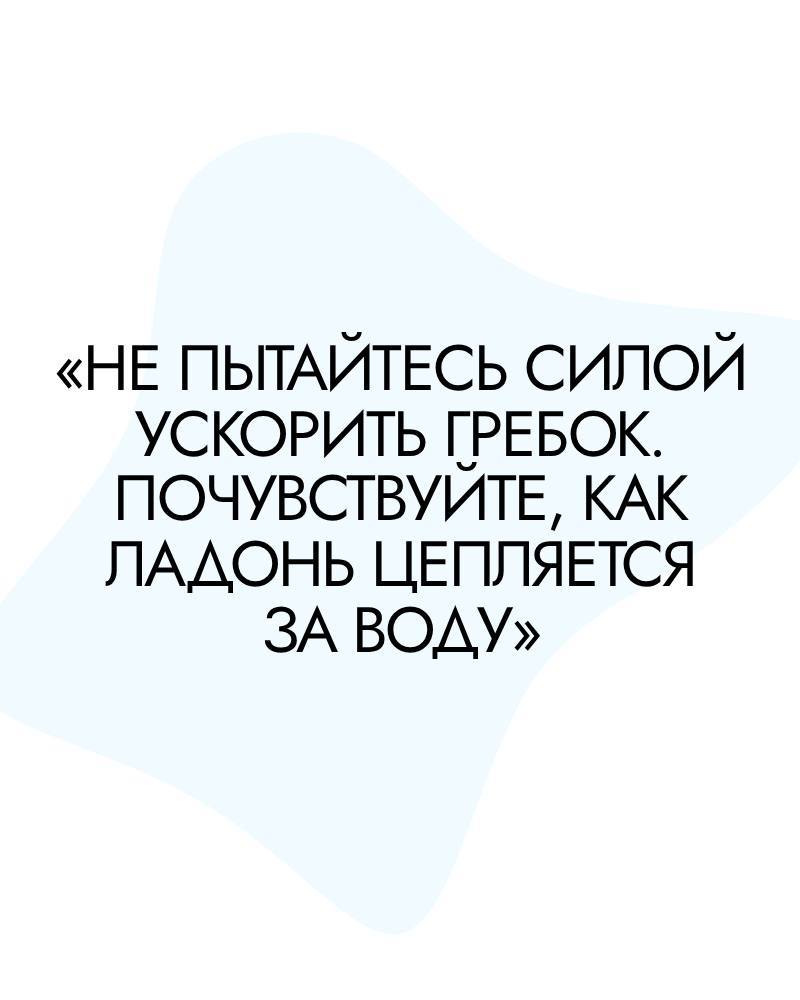 «Не пытайтесь силой ускорить гребок. Почувствуйте, как ладонь цепляется за воду»